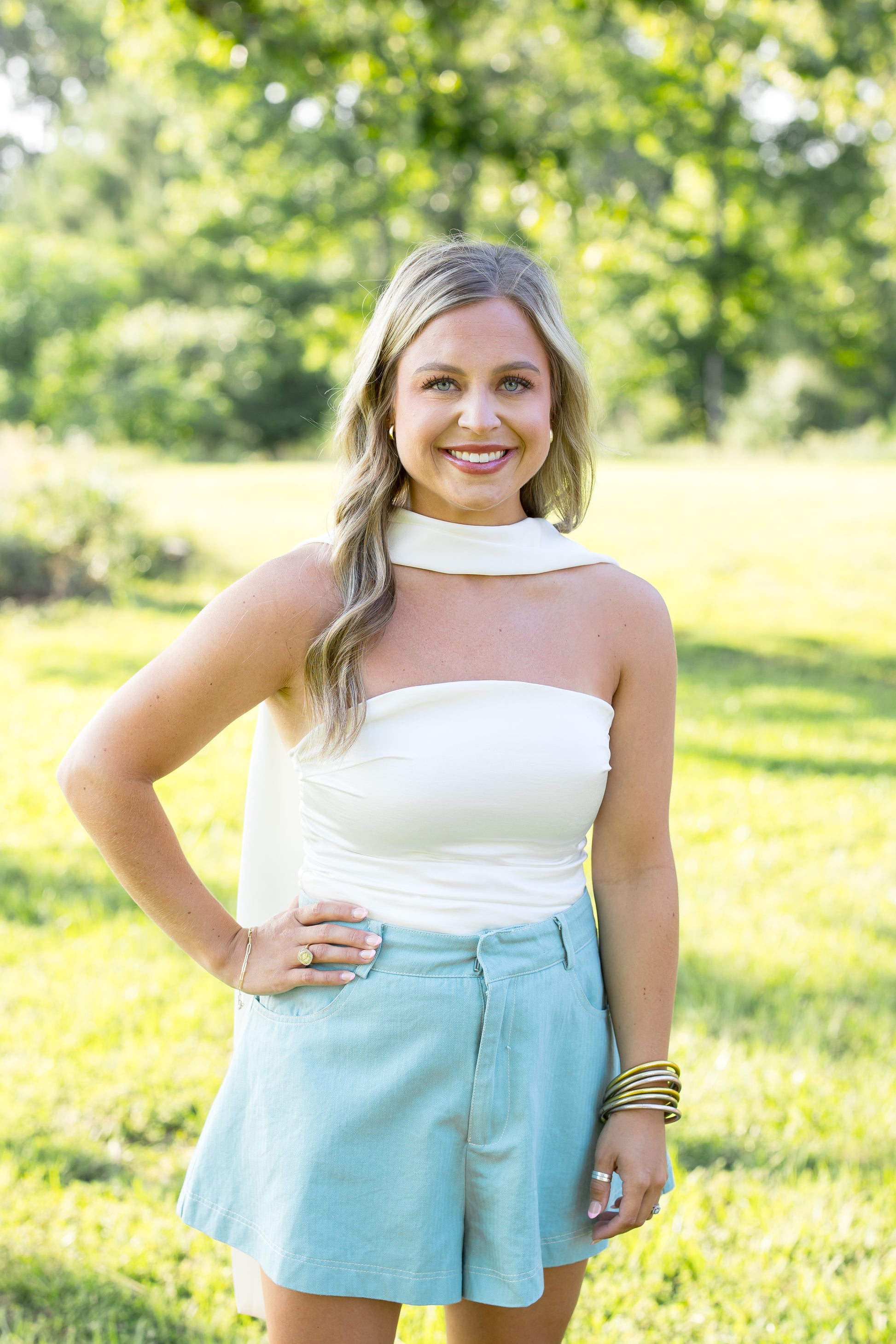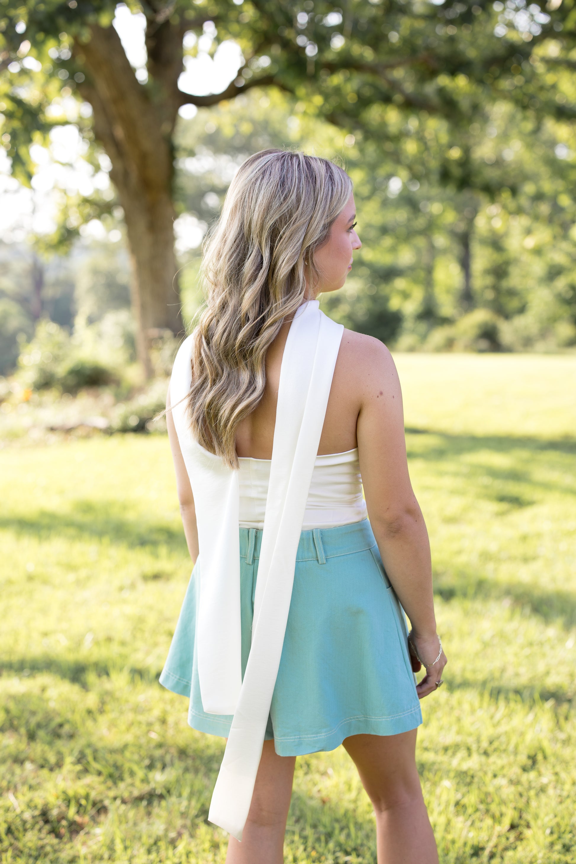 - Straight Neckline Scarf Top - off white